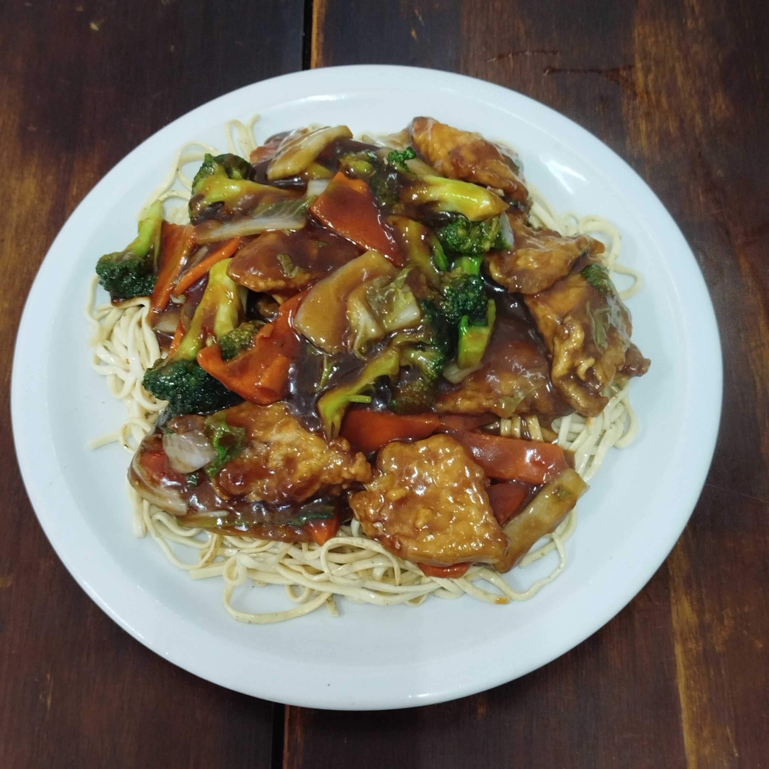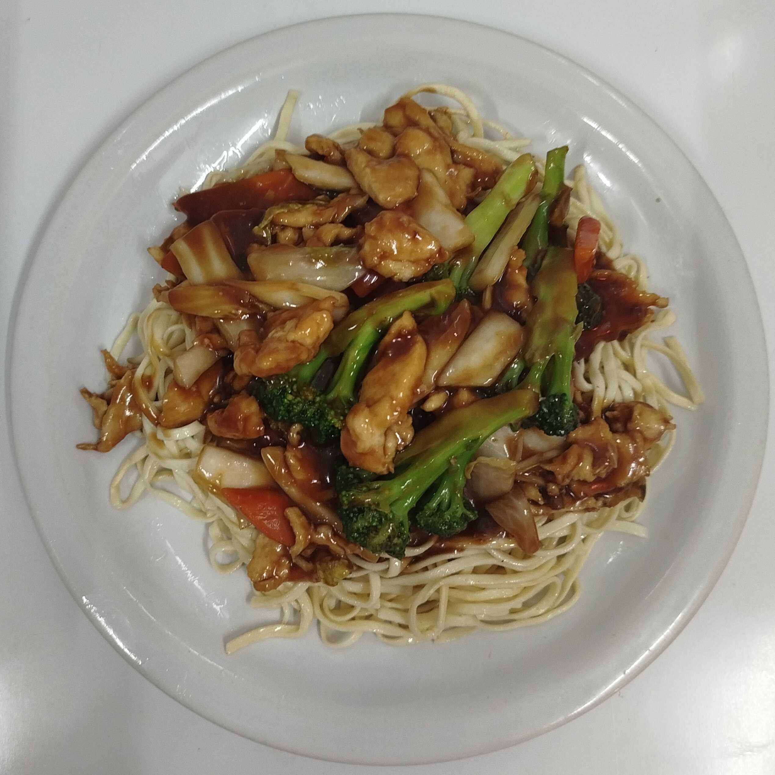 Um delicioso e irresistível yakissoba, ele acompanha uma massa artesanal, frango bem temperado, e diversos acompanhamentos maravilhosoas. aproximadamente 900 g