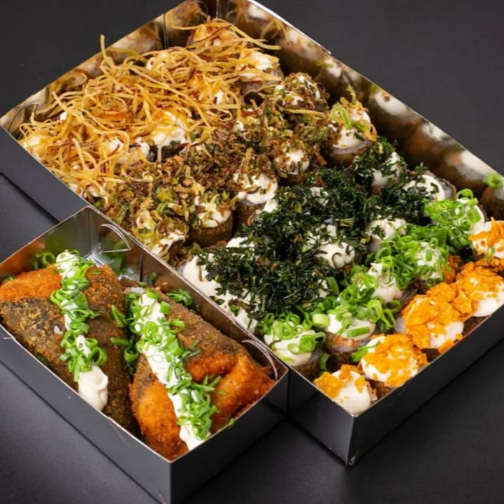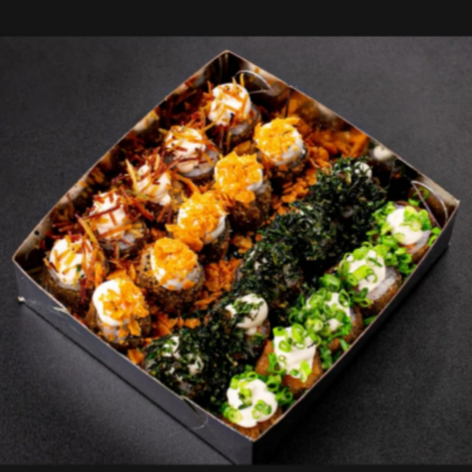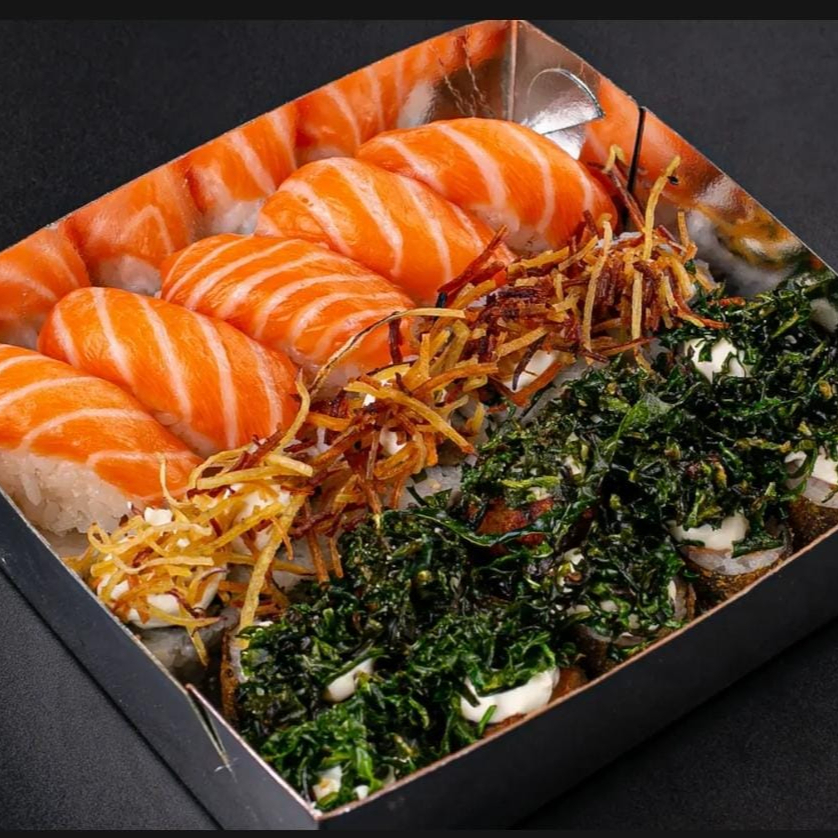 Descubra a delicadeza e a explosão de sabores do nosso combo promocional, composto por 10 hot rolls crocantes, envoltos por uma deliciosa camada de couve crispy. Acompanha 5 niguiris de salmão, frescos e suculentos, que derretem na boca. E para completar, saboreie 5 uramakis Filadélfia, recheados com cream cheese e envoltos por batata crispy, que proporcionam uma experiência gastronômica única e irresistível. Este é um prato perfeito para os amantes da culinária japonesa que procuram por uma combinação de sabores autênticos e texturas incríveis.