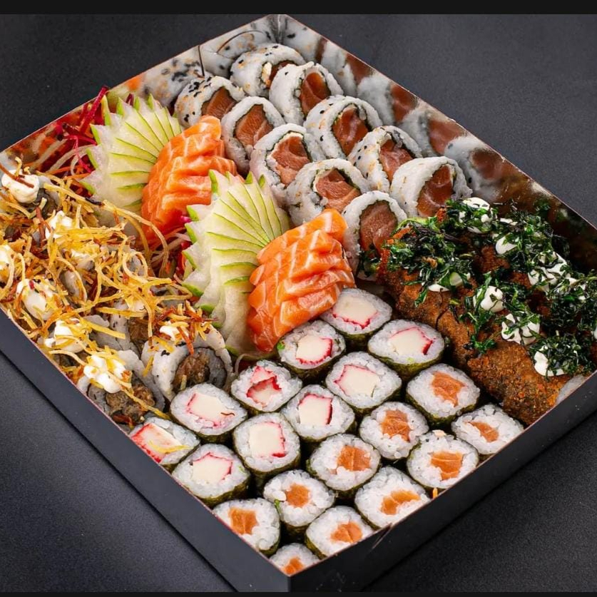 Aproveite nosso Combo Família com 116 peças incríveis em promoção! Este delicioso combo é composto por 20 peças de Salmomaki fresquinho, 20 irresistíveis Hot Holls com Couve Crispy crocante, 20 Uramaki Filadélfia envoltos em Batata Crispy saborosa, 20 Kanimakis delicados e 20 Uramaki de Salmão suculentos. Para finalizar, temos ainda 16 fatias de Sashimi de Salmão fresco e delicioso. Um verdadeiro banquete de sabores para compartilhar com a família e amigos!