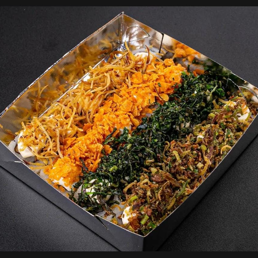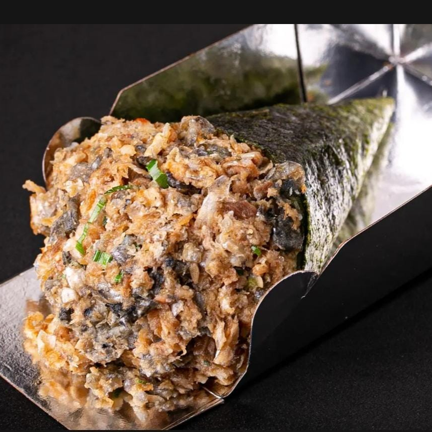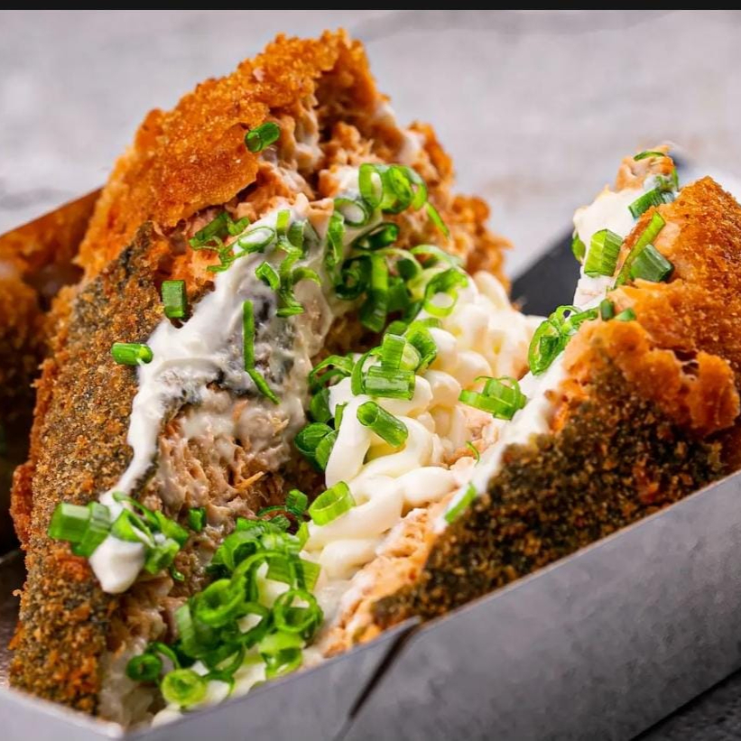 Leve, crocante e cheio de sabor! Feito com suculentos pedaços de kani kama misturados a um cremoso refogado com temperos especiais