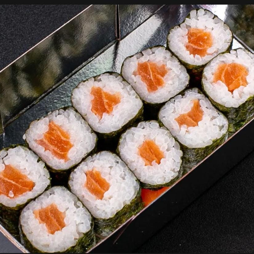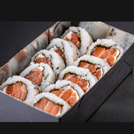 Um irresistível conjunto de 10 Hossomakis de salmão, cuidadosamente enrolados à mão. Cada peça é meticulosamente preenchida com generosas fatias de salmão fresco e vibrante. Este saboroso peixe é envolvido por uma camada de shari, o nosso arroz de sushi de grão curto, delicadamente temperado com vinagre de arroz. Por fim, cada Hossomaki é envolvido por uma folha de nori tostada e crocante, que acrescenta uma textura extra ao prato. Uma celebração de sabores delicados e texturas contrastantes, perfeita para os amantes de sushi!