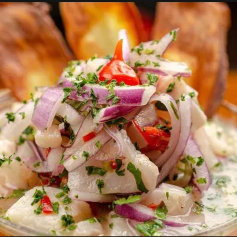 Uma explosão de frescor e sabor. Nosso ceviche é feito com salmao e tilapia do Dia, delicadamente cortado em cubos e marinado no ponto certo com suco de limão, cebola roxa, pimenta dedo de moça e coentro. A acidez do limão e o toque picante criam uma harmonia perfeita.