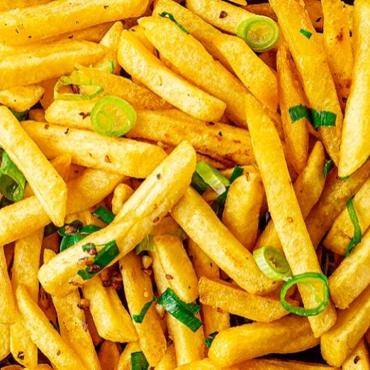 BATATA FRITA TEMPERADA COM ALHO E CEBOLIN