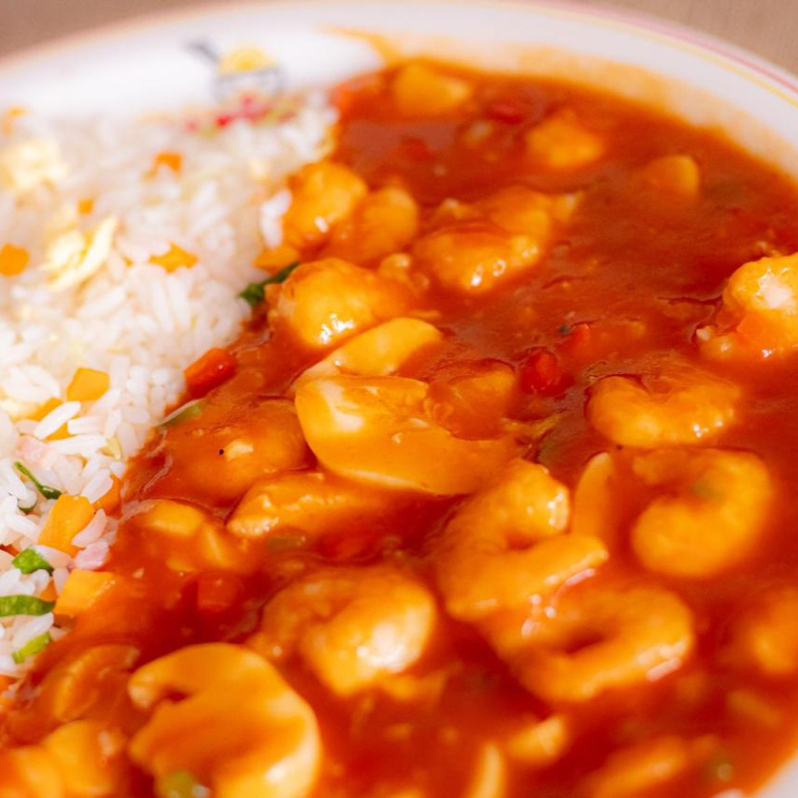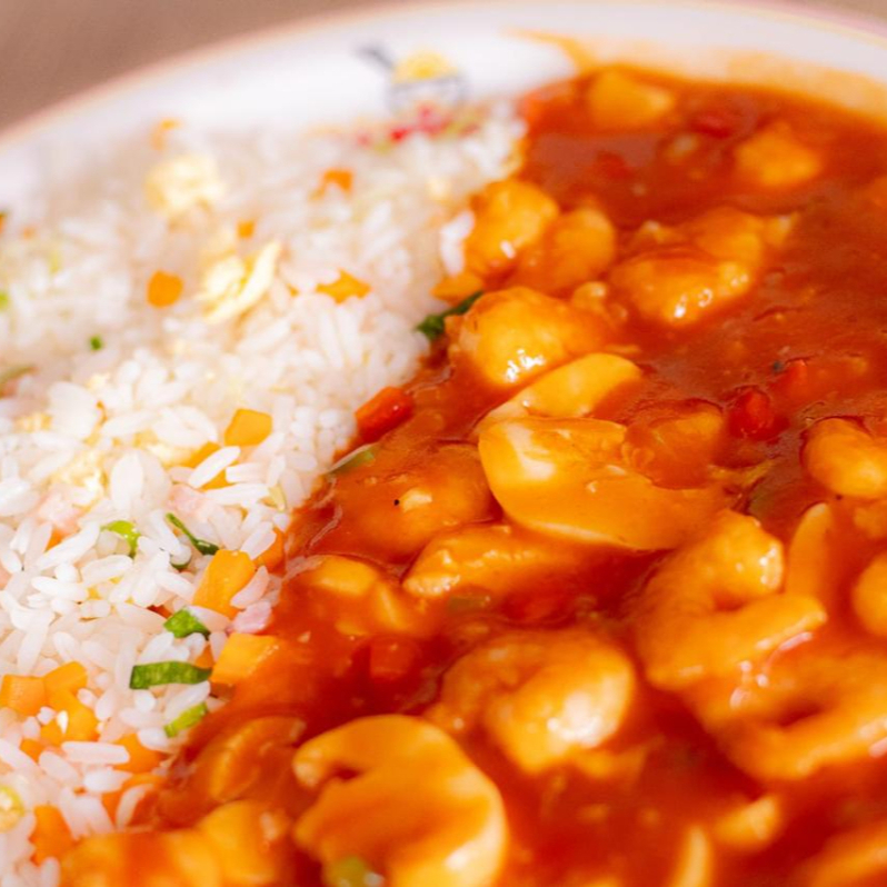 Camarao Ao Molho Apimentado Pequeno Com Arroz - Serve 1pessoa