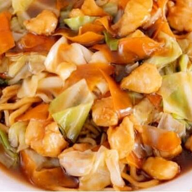 SERVE 2 PESSOAS.MACARRÃO FRITO COM FRANGO EM CUBOS, CENOURA, REPOLHO REFOGADO, CEBOLINHA PICADA AO MOLHO DE GENGIBRE.