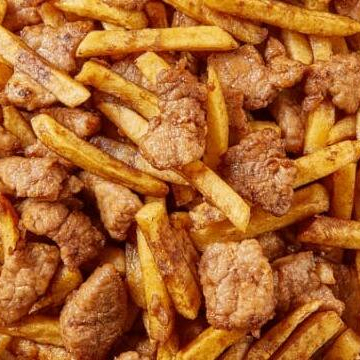1/ PORÇÃO GRANDE DE CARNE BOVINA AO MOLHO SHOYU COM BATATAS FRITAS