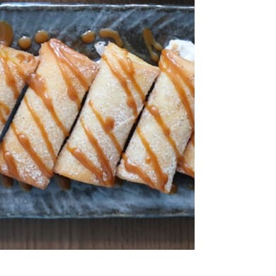 Massa fina recheada com doce de leite , coberta com canela e açúcar. 4ud pequenas