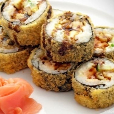 (enrolado com arroz , alga nori, cream cheese , cebolinha? Sabor á escolher : Salmão , Shimeji ,Kani ou Camarão