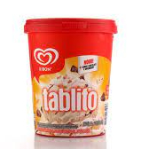 Sorvete sabor doce de leite e chocolate com pedaços sabor chocolate e recheio cremoso doce de leite