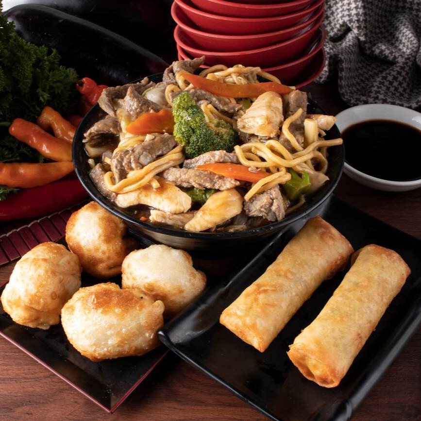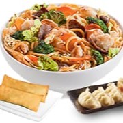 1 yakisoba misto (carne, frango, legumes, cebolinha e gergelim) + 2 rolinho primavera legumes + 4 gyosas