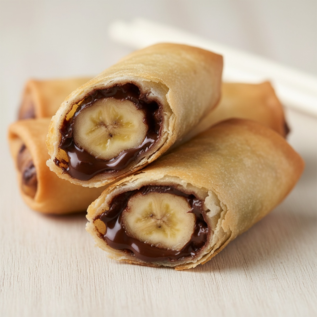 Delicioso Rolinho Primavera Recheado Com Banana e Chocolate -2 Unidades