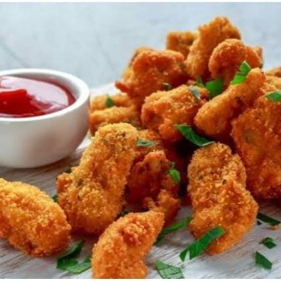 Frango A Passarinha Alho E Ólheo Acompanha Maionese E Limão A Francesa