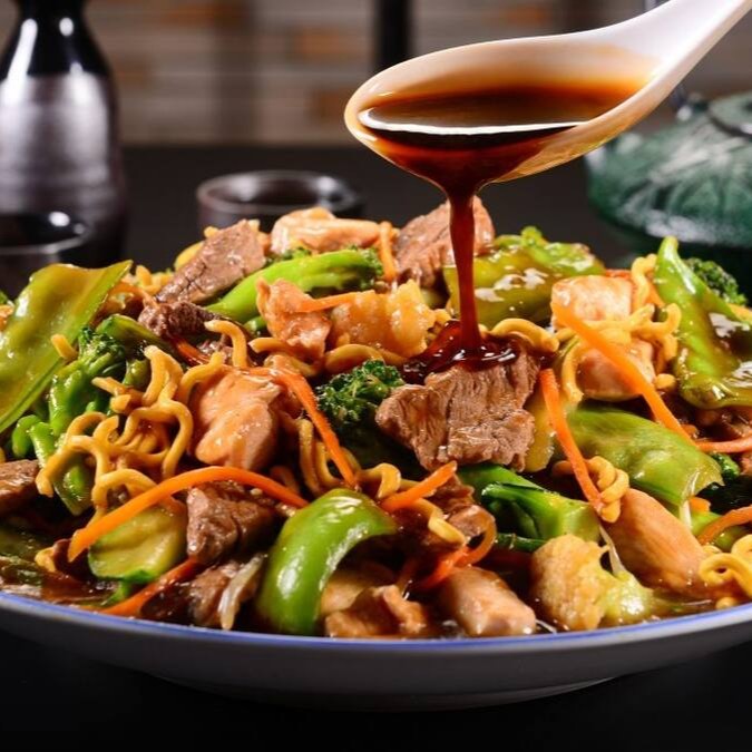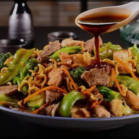 Macarão, Carne,Frango E Legumes Delicioso Molho Oriental
