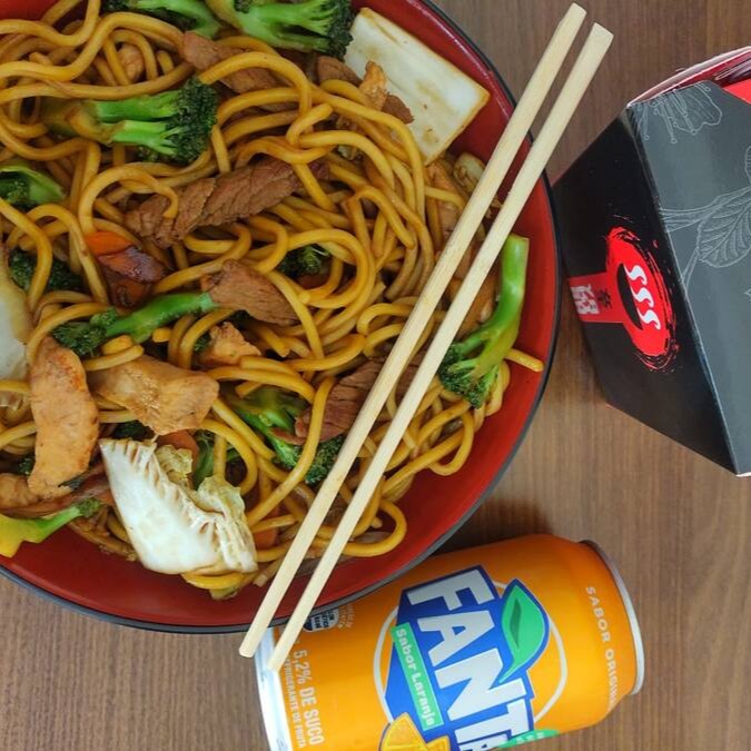 Macarão,Carne ,Frango E Legumes Nosso Delicioso Molho Oriental
