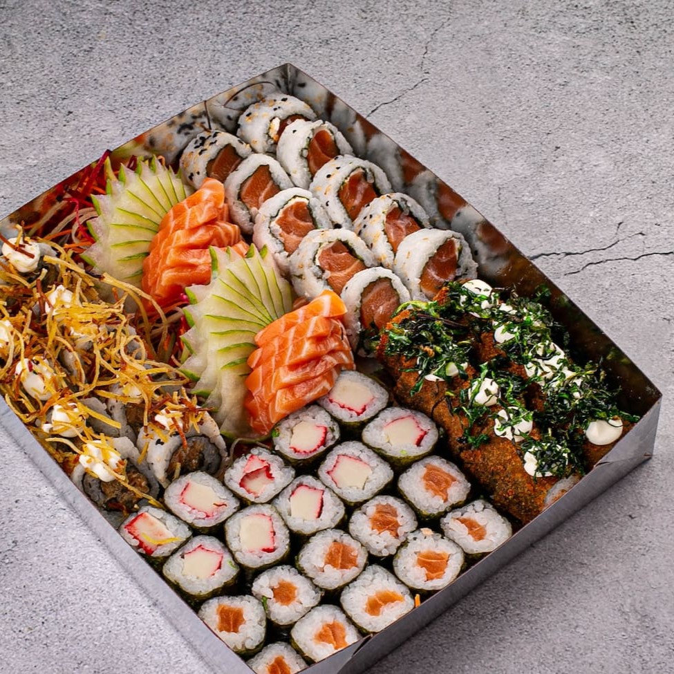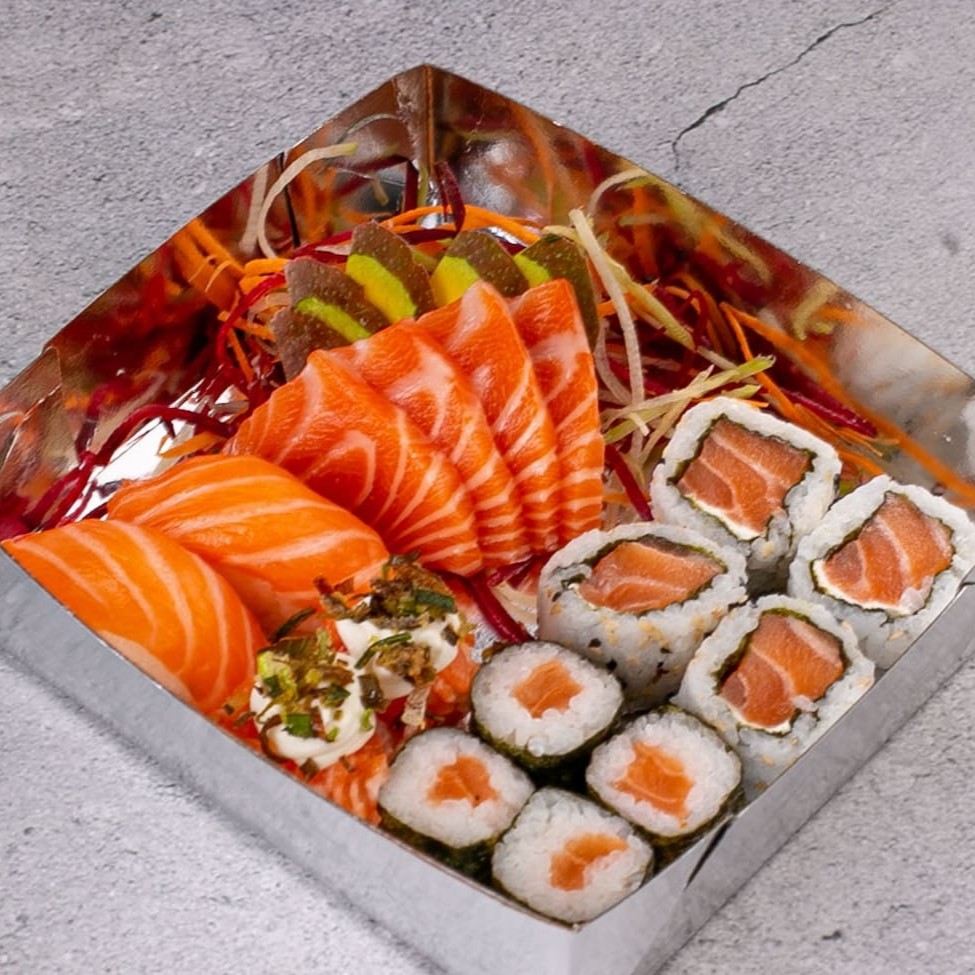 2 guioza 5 sashimi salmão 2 niguiri 2 jou salmão 6 Hot 1 shemeje 2 Harumaki queijos 2 Hosomaki de salmão