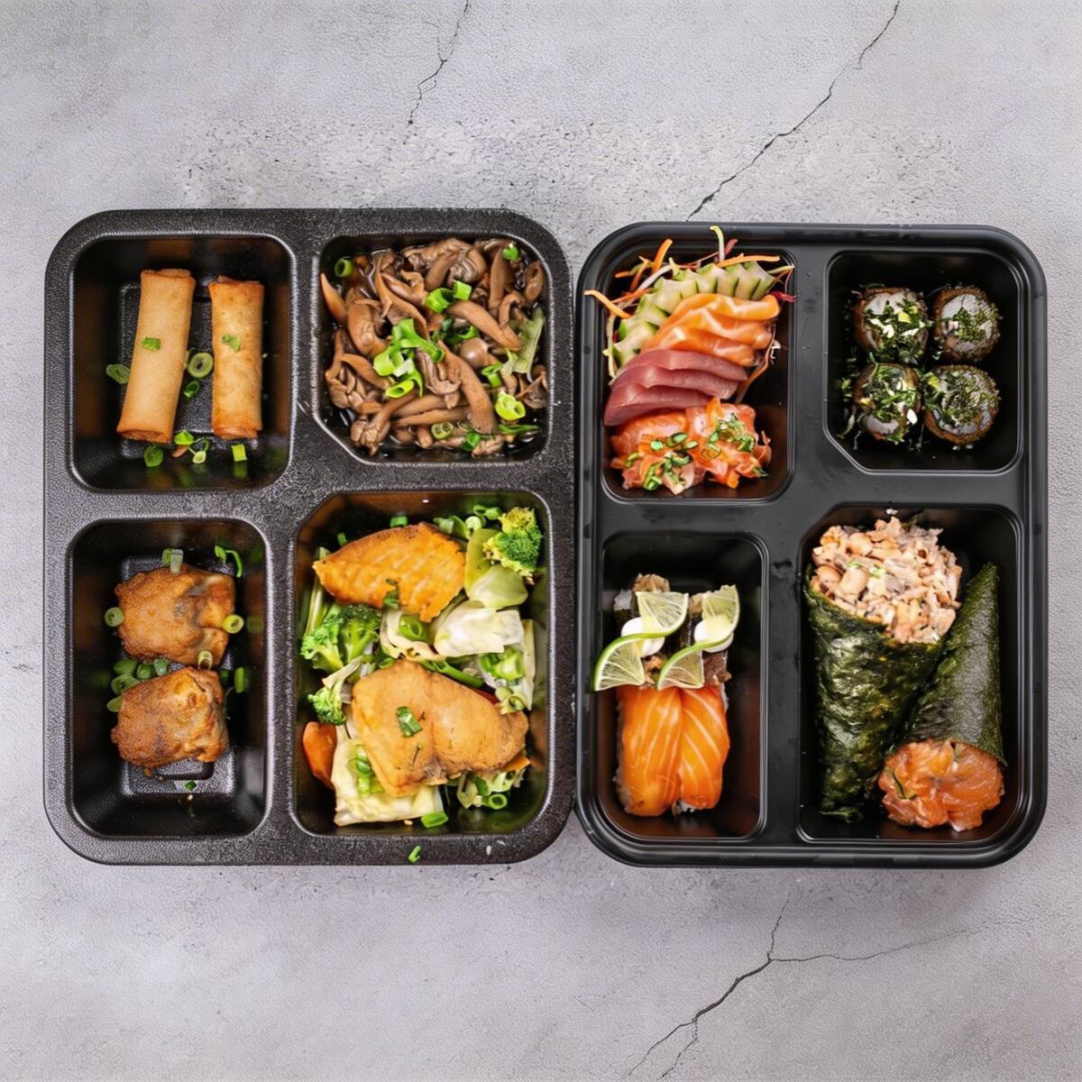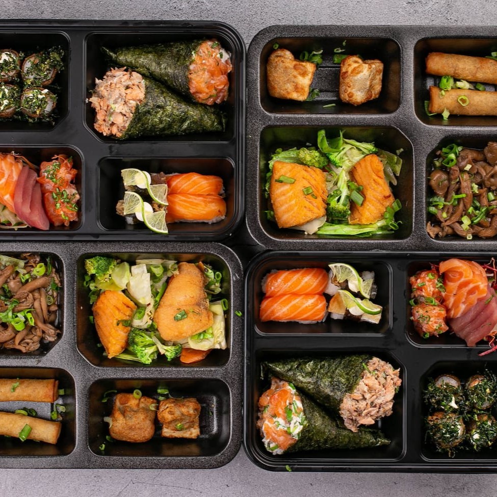 6 Sashimi 2 Jhous 2 niguiri skin 2 Niguiri salmão 4 Hot Hol 2 Temaki 100g a escolha do cliente 2 Guioza 2 Harumaki De Queijo 2 Salmões Grelhados com legumes 1 Shimeji 100g