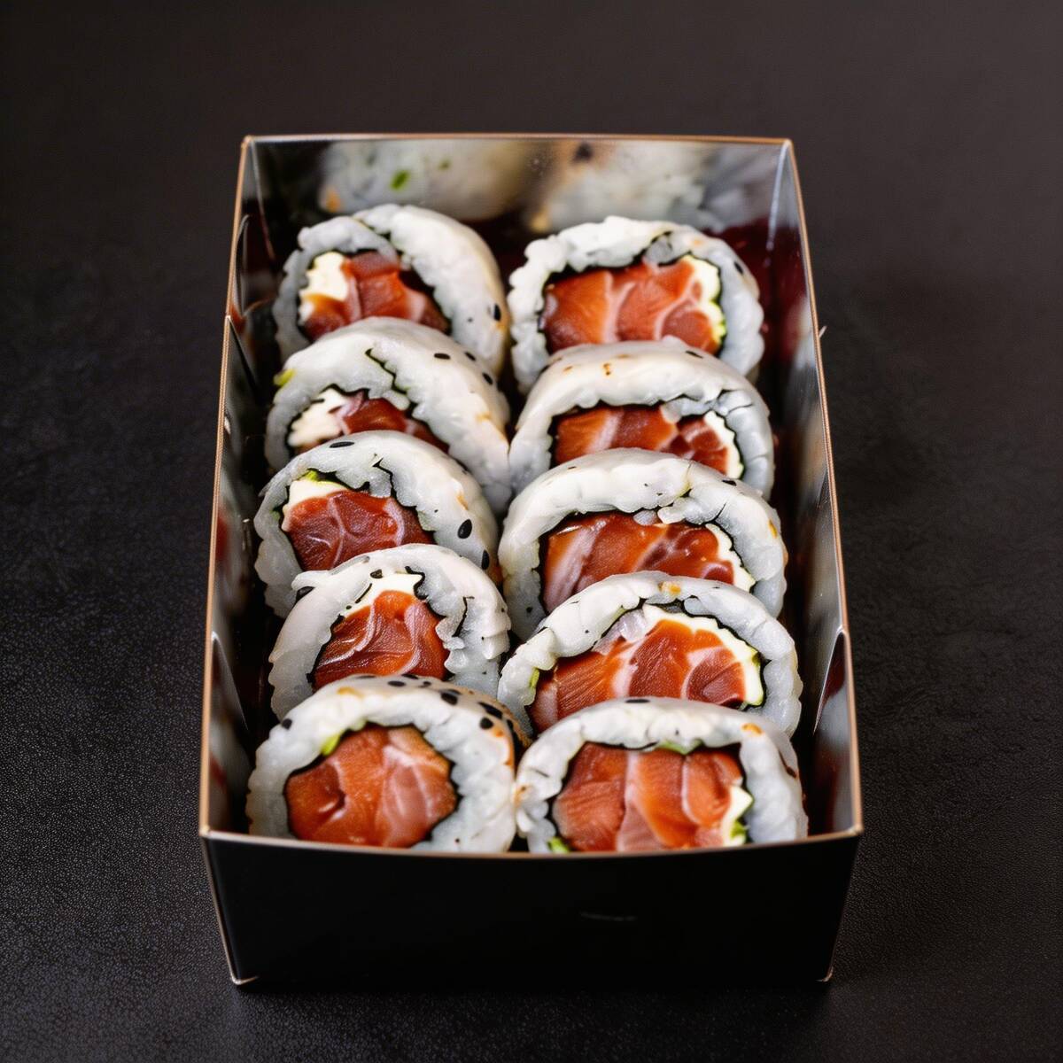 Uramaki Skin com fita de salmão