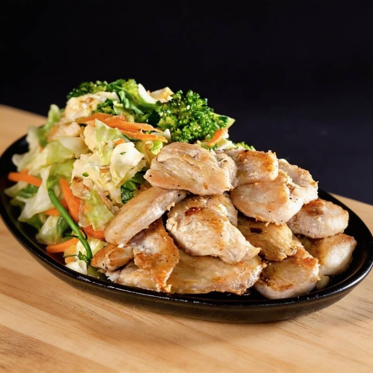 Frango grelhado na chapa acompanha legumes refogado manteiga