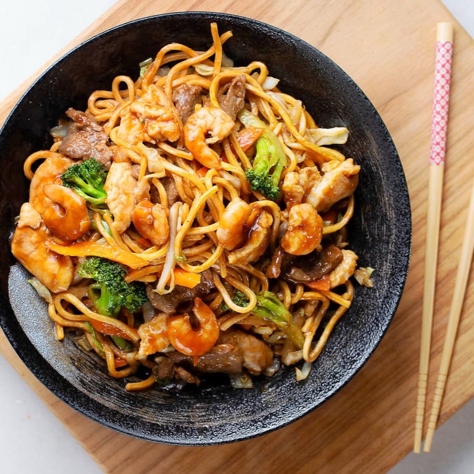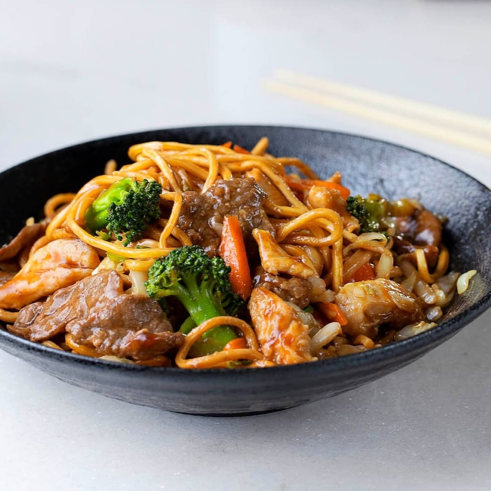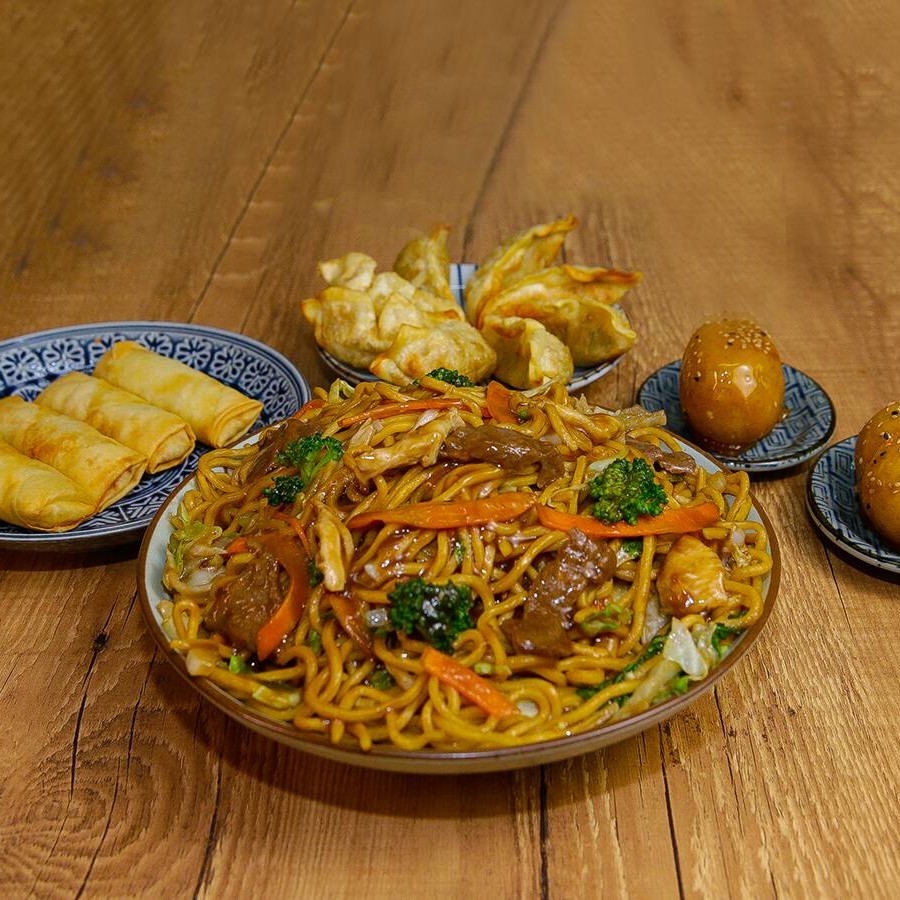 Experimente e compartilhe nosso delicioso yakisoba tradicional: Macarrão, carne e legumes fresquinhos no ponto ideal com nosso exclusivo molho.