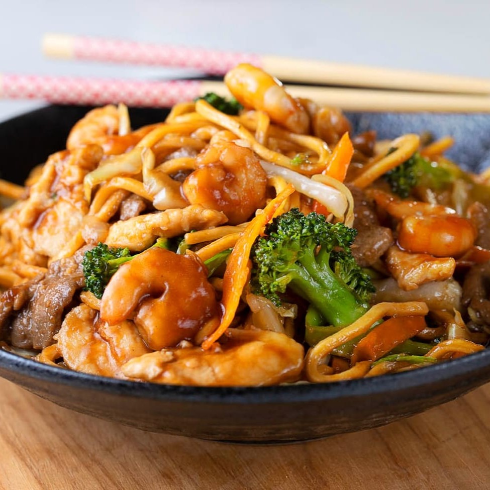 Yakisoba+orange Chicken Com Arroz Chopsuey