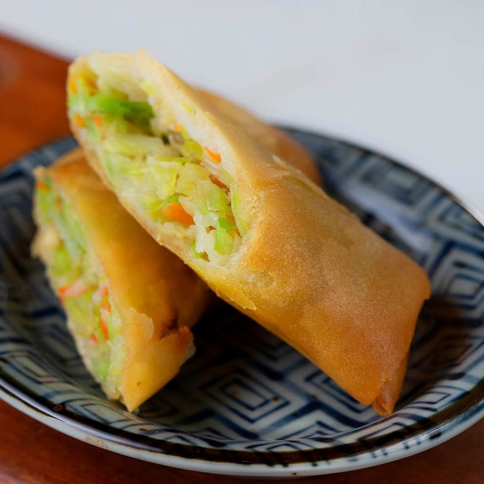 Nosso rolinho é artesanal com uma massa fina e crocante recheado com legumes. Sem carne moída.