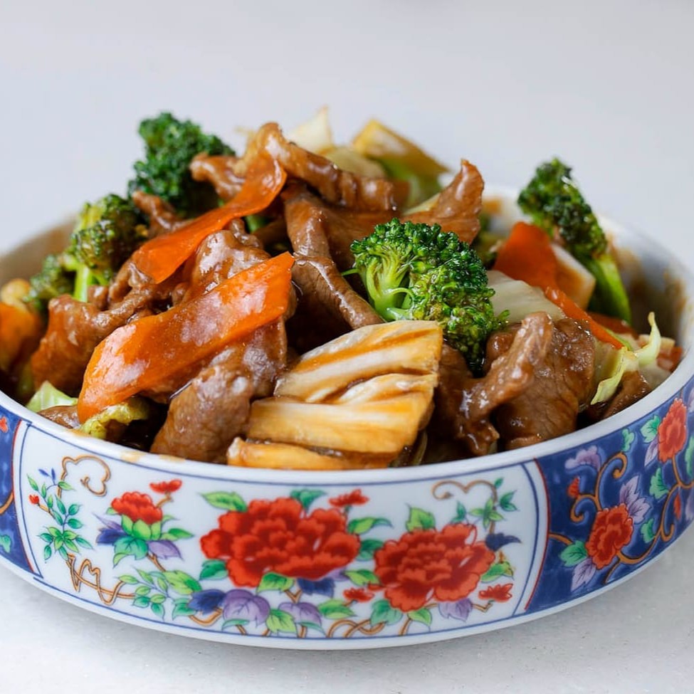 Fatias suculentas de carne bovina refogados com cenoura, brócolis, acelga e repolho, envolvidos em um molho especial que realça todos os sabores. Uma combinação perfeita de proteína e vegetais frescos, ideal para uma refeição equilibrada e saborosa. Peça já pelo e receba em casa! #Carnecomlegumes #Comidachinesa #Delivery # #Saudável