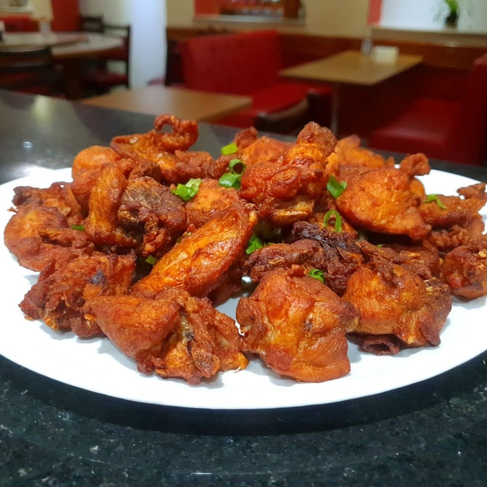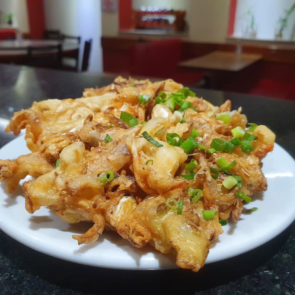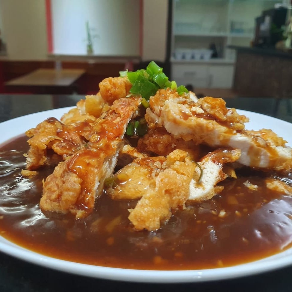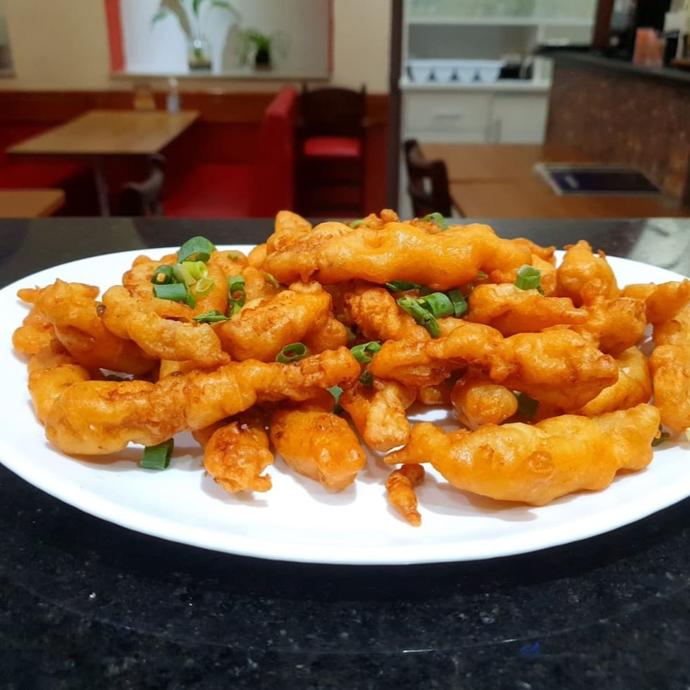 Filé de frango frito ao molho de gengibre,alho e cebolinha