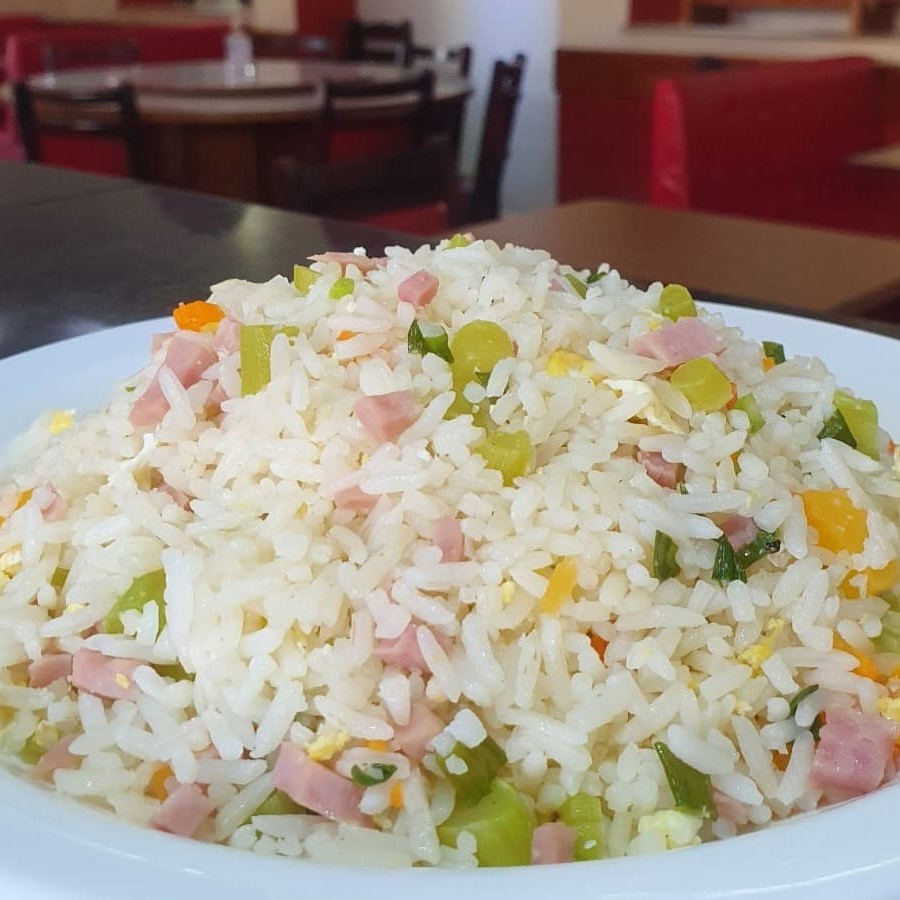 Arroz com presunto,ovo,cenoura,vagem e cebolinha.