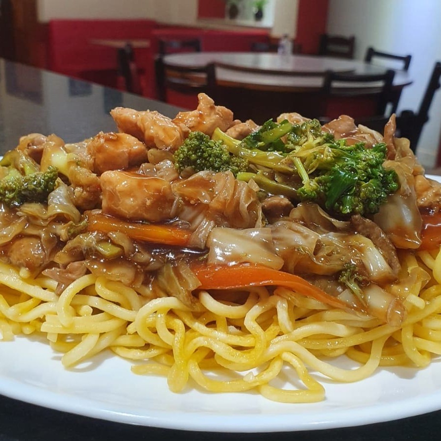 Yakissoba estilo japonês mais seco (macarrão, carne, frango, pimentão, legumes variados) obs: Não fazemos 1/2 porção, apenas inteira