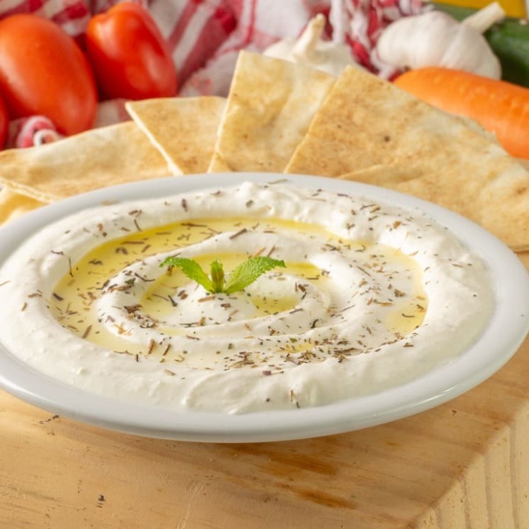 100g de coalhada seca regada de azeite. Acompanha pão sírio.