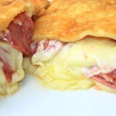 Carne, mussarela e ovo. Obs: Não fazemos alterações de ingredientes.