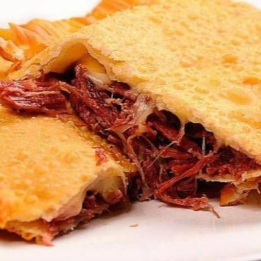 Pastel de Carne Louca desfiada e Queijo Mussarela. Obs: Não fazemos alterações de ingredientes.