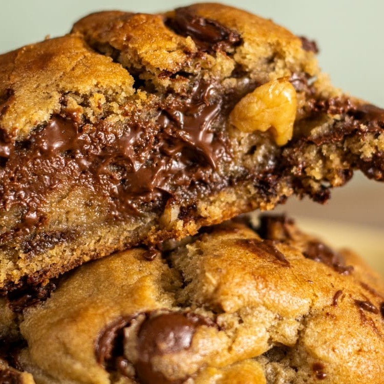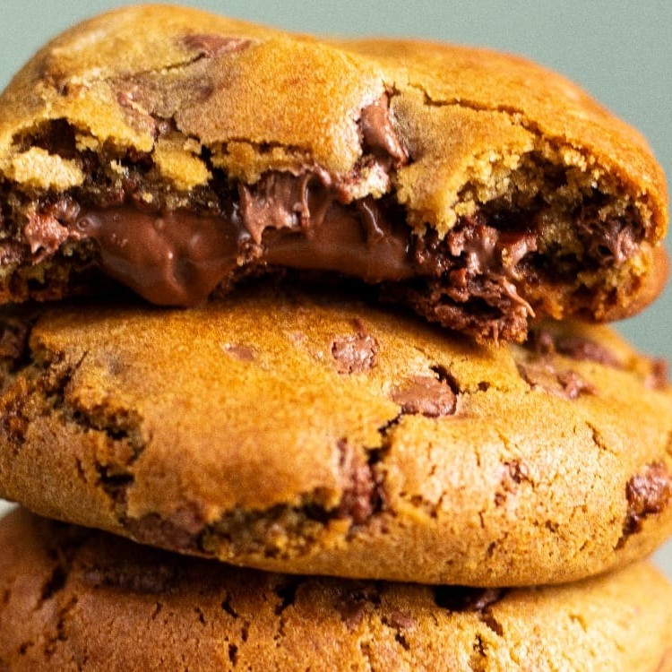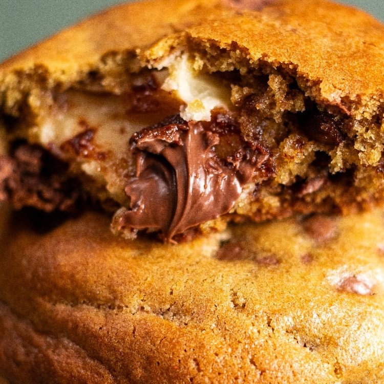 Massa de baunilha com gotas de chocolate ao leite recheado com muita Nutella.