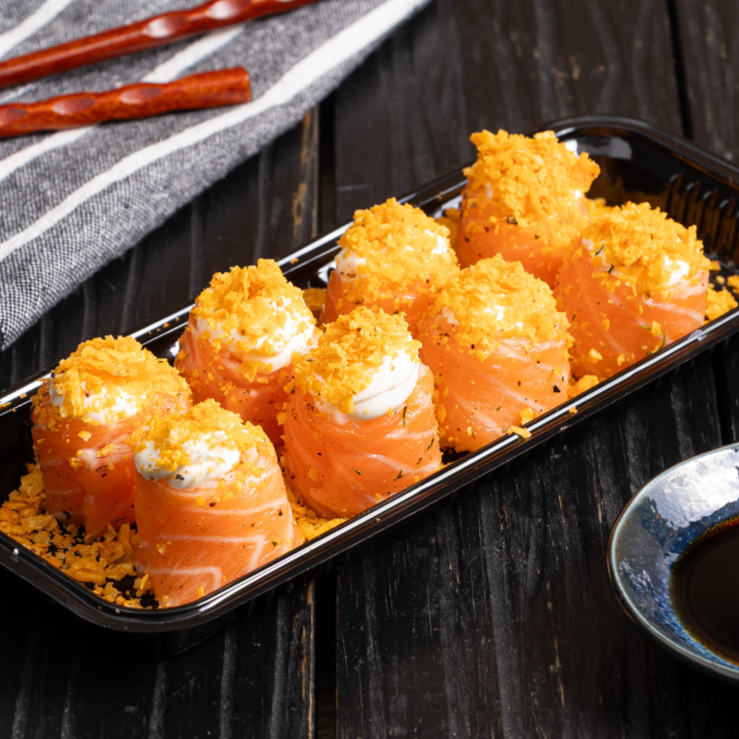 Crocante por fora, surpreendente por dentro: recheio generoso de salmão em cubos , cream cheese e cebolinha. Uma explosão de sabores para quem ama frutos do mar! Serve 1 Pessoa (200 gramas)