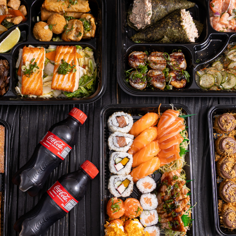 Equilíbrio perfeito entre frescor e sabor! Sashimis, uramakis, hossomakis e niguiris de salmão, tilápia e kani.