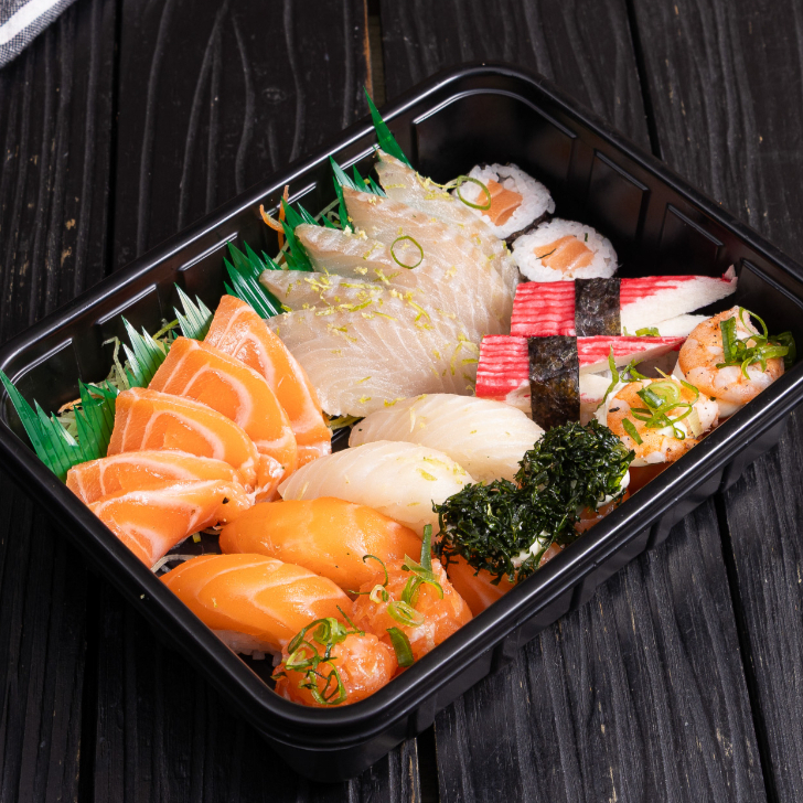 Combo completo com sabores clássicos e frescos! Inclui uramaki, hossomakis, jows e niguiris de salmão e kani.