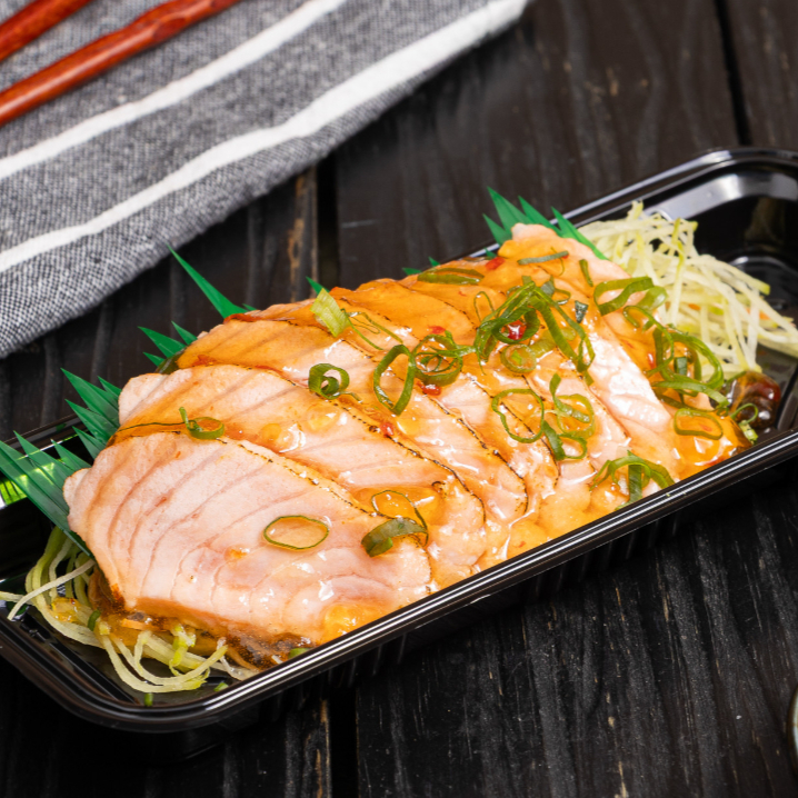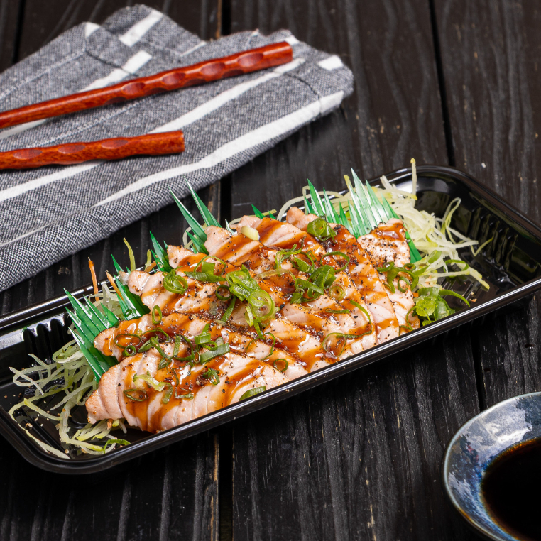 8 fatias delicadas de salmão fresco, cortadas na medida certa para derreter na boca. Puro sabor e frescor em cada pedaço.