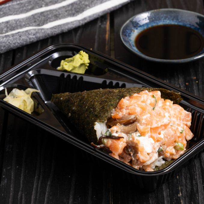 temaki Filadelphia completo com Cream Cheese e cebolinha, recheio de salmão grelhado, 150 gramas