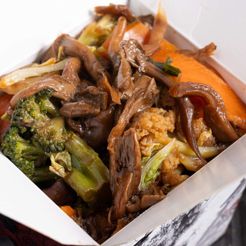 Base de gohan com cogumelos shimeji salteados, manga fresca, pepino crocante, cebola roxa, tomate cereja e um toque do nosso tempero especial. Leve, saboroso e 100% vegetariano.