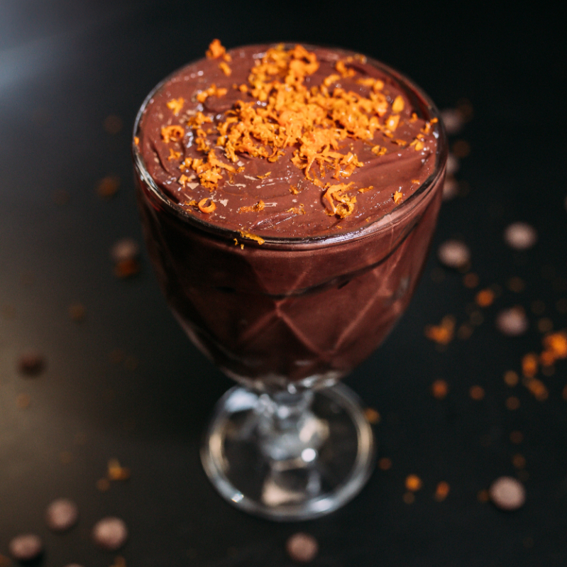 Delicioso mousse de chocolate 70% Sicao com geleia de cupuaçu e crocante de amendoim torrado. (250g)