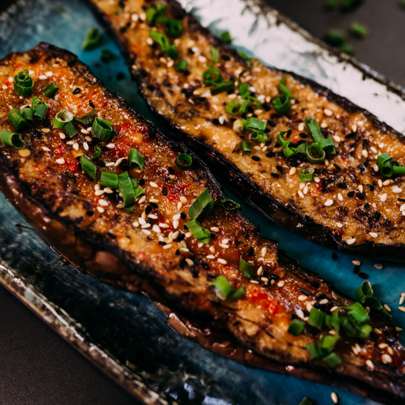 Berinjela japonesa assada e perfeitamente glaceada com um molho de missô agridoce.