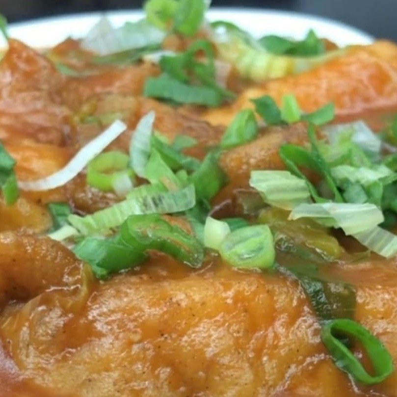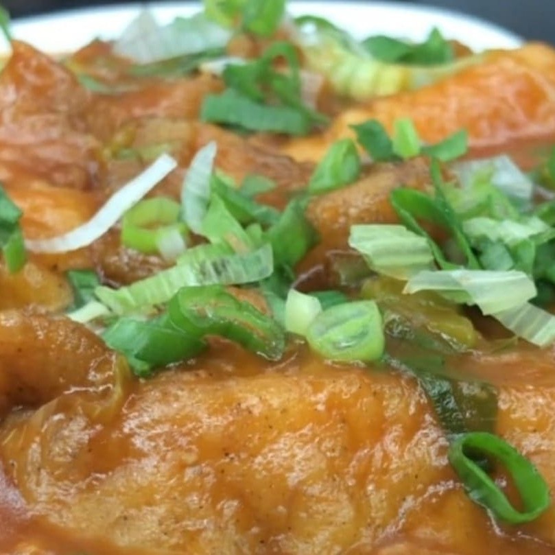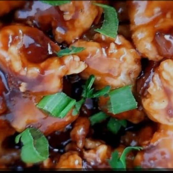 Saborosa coxa e suculenta sobrecoxa de frango, cuidadosamente desossadas e mergulhadas em um molho exótico de gengibre. Este prato, pertencente à categoria 'Pratos de Frango', é habilmente salpicado com cebolinha verde fresca, conferindo um toque final vibrante e sofisticado. Encante-se com esta combinação única de sabores, na qual o picante do gengibre se alia à suavidade do frango, resultando em