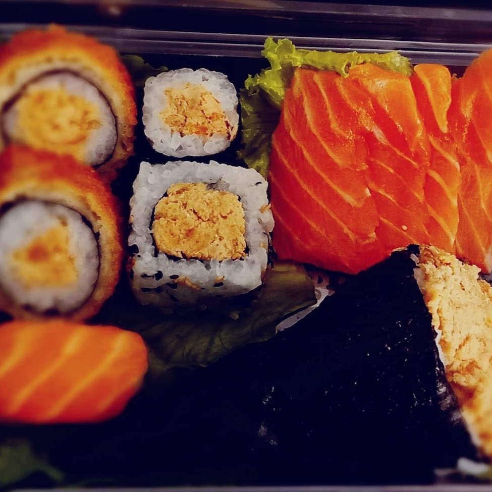 5 Sashimi 2 Hot rol 1 Niguire 1 Uramake 1 Hossomake 1 Temaki Salamão Grelhado