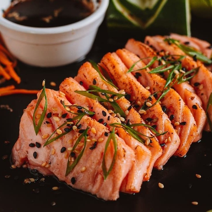 Apresentamos o nosso 'Burguer Salmão Grelhado', uma inovação cativante na categoria 'Sushi Burguer'. Este prato único é composto por um burguer de arroz gohan, meticulosamente empanado na crocante farinha panko e frito à perfeição para criar uma textura irresistível. No coração do nosso burguer, você encontrará um generoso recheio de salmão grelhado, cujos suculentos sabores são realçados pela sua