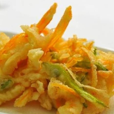 Um enrolado de nori por fora , por dentro Arroz Japones com camarao e creme clesse empanado na Farinha Panko e frito. Com creme clesse e camarão em cima.