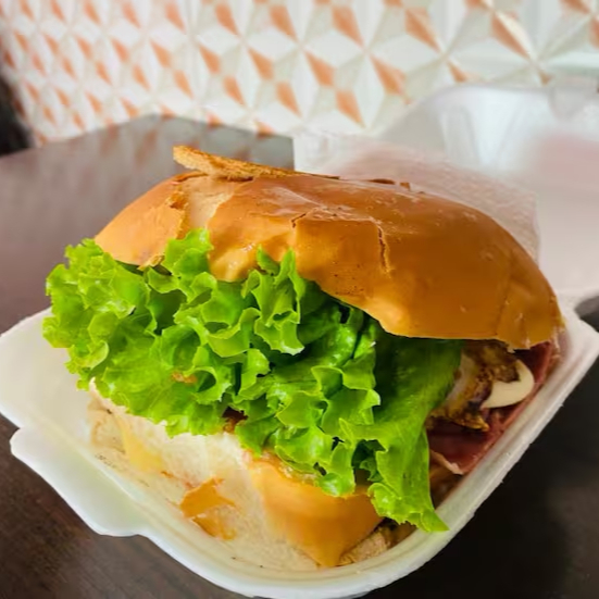 Experimente o X-Tudo, um lanche completo com pão, hambúrguer suculento, calabresa, ovo, bacon crocante, mussarela derretida, presunto, cheddar cremoso, Catupiry, milho, alface fresca, tomate e um toque especial de maionese e ketchup.