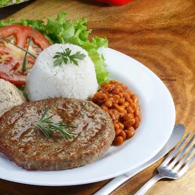 Acompanha: Arroz, feijão, macarrão, legumes, calabresa acebolada, Coca-Cola de 350ml e uma cortesia da casa.