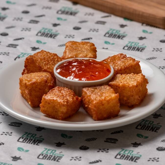 Sim! Simplesmente um disco de Catupiry Vegano Empanado na casa, delicioso, aqui no cardápio da Zero Carne!