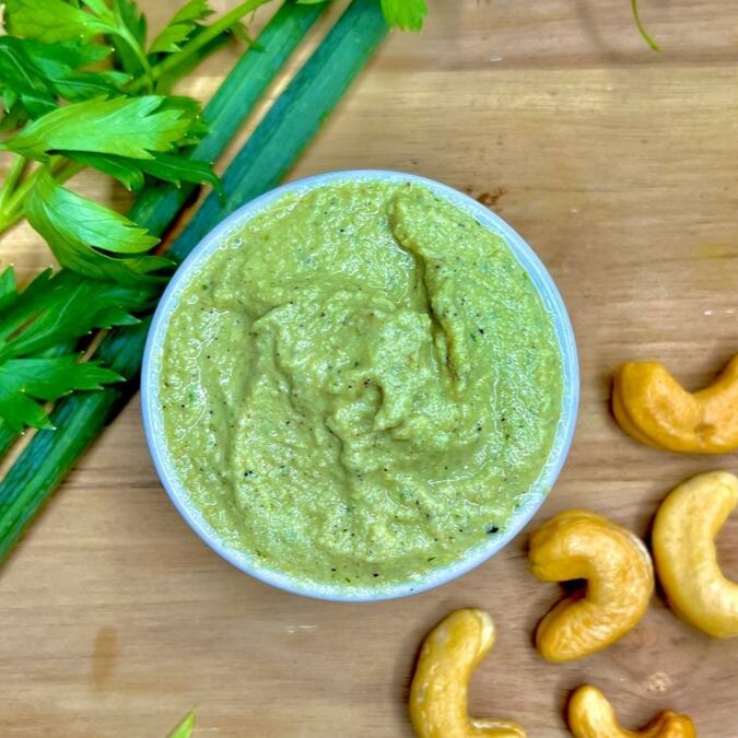 A Base de Castanhas de Caju, temperada com Ervas Verdes.