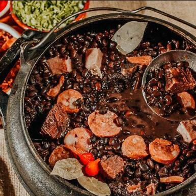 Arroz Branco soltinho, feijão caipira fresquinho, linguiça toscana frita, farofinha e batatinha frita. Sobremesa da casa disponível entre, mousse limão maracujá ou brigadeiro de colher.